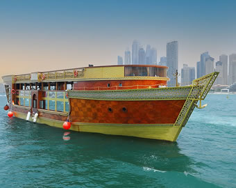Indulge in a luxurious dinner onboard Dubais richest and largest boat, the Ocean Empress Dhow Dinner Cruise.